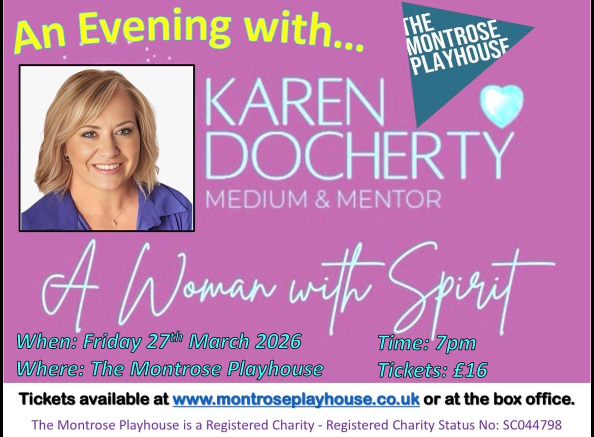 Join us for an extraordinary evening as internationally acclaimed medium Karen Docherty brings her remarkable gift to The Montrose Playhouse in this special fundraising event.